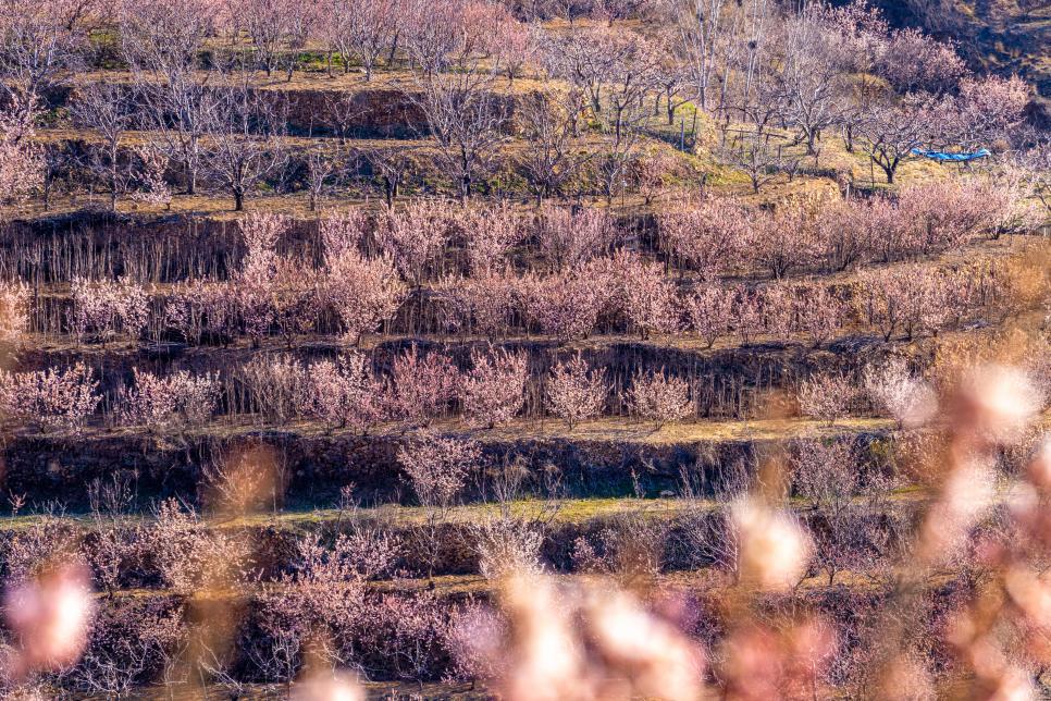 在五莲县上沟村,梯田层叠间樱桃花如云铺展。 武爱民 摄