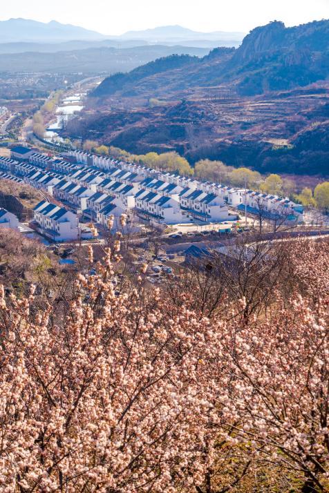 山眼下,白墙青瓦的屯子嵌在春日里,花枝漫坡。武爱民 摄