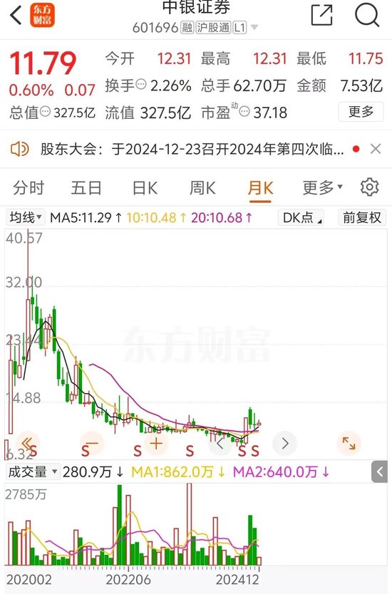 限定12月10日收盘,中银证券的最新市值为327.5亿元。