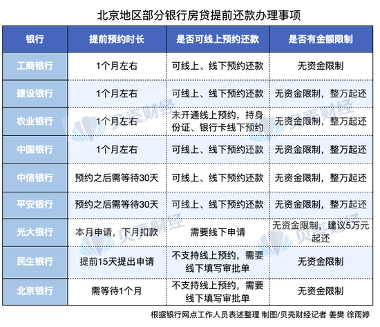多家银利用命主说念主员告诉贝壳财经记者,房贷提前还款均需要预约,恭候技能大批在1个月驾驭;还款金额并无资金限定,客户可禁受部分还款或一次性还清,但部分银行称需要整万起还。