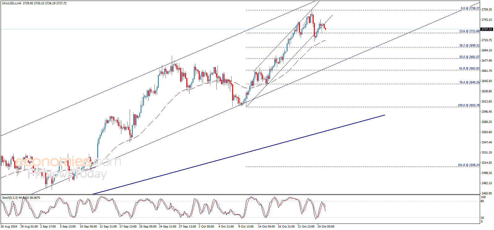 把柄Economies.com,金价依然失去高涨动能,并失守迫切撑握线,一朝跌破2722.00好意思元/盎司,这将为金价进一步大跌绽开空间。