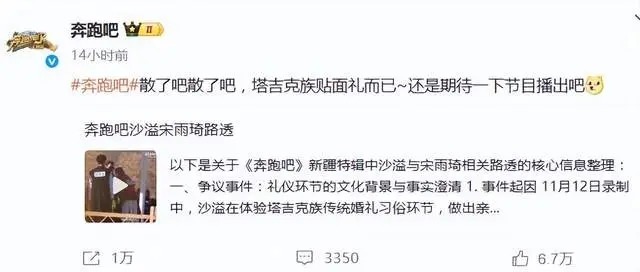11月13日,《奔走吧》节目次制现场,一段视频在蚁合疯传:46岁的沙溢将24岁的宋雨琦揽近,先是额头相贴疑似吻额,继而侧脸相靠。这组行为在碎屑化传播中飞速发酵,直至节目组官方下场回答:“散了吧散了吧,塔吉克族贴面礼费力。”