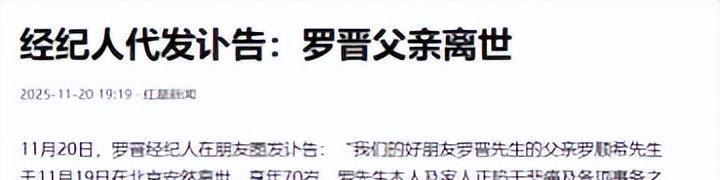 多样言论劈头盖脸,可两个当事东谈主,却莫得一个站出来解释的,直到一则凶信传来,这件事才终于有了一个效力,原本是罗晋的父亲死一火了。