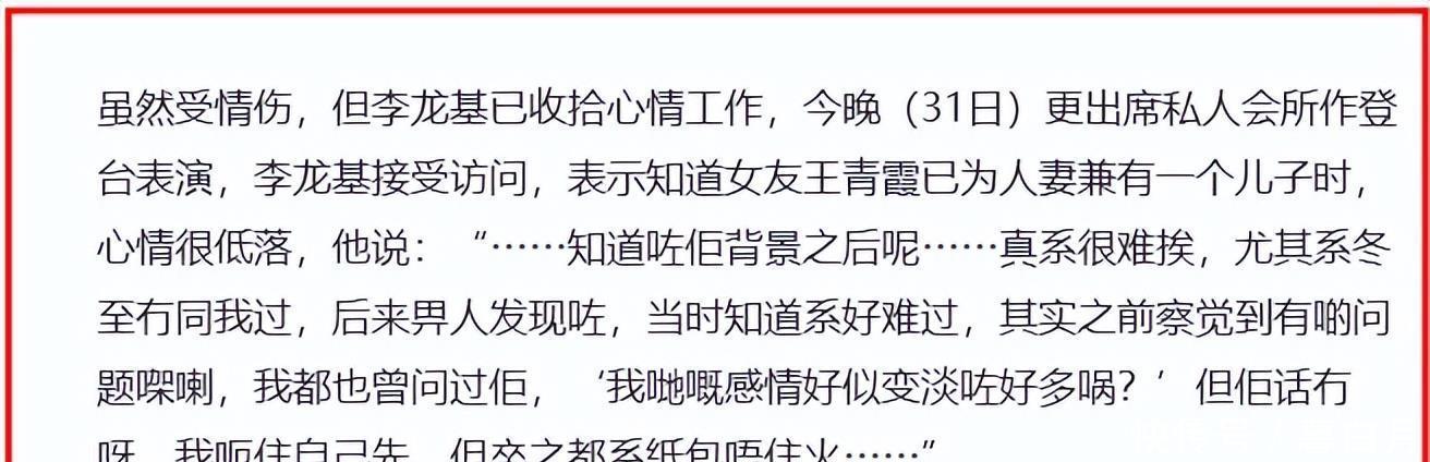 李龙基更是在汲取港媒采访时暗意会迎娶王青霞。