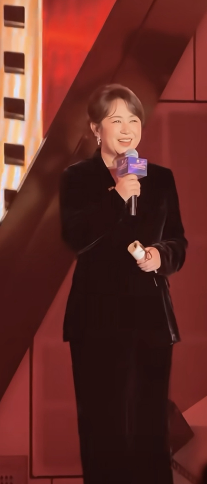 垫肩、推广感的颜料、推广感的面料,王人将她所有这个词东说念主看起来像是堆起来了相似,显得很壮。