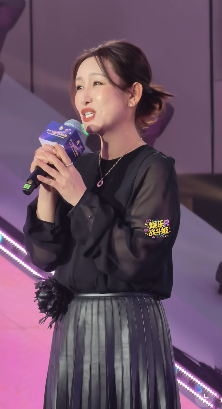 遴选衬衫加百褶半身裙的组合,不外有网友吐槽显得她小腹较着。