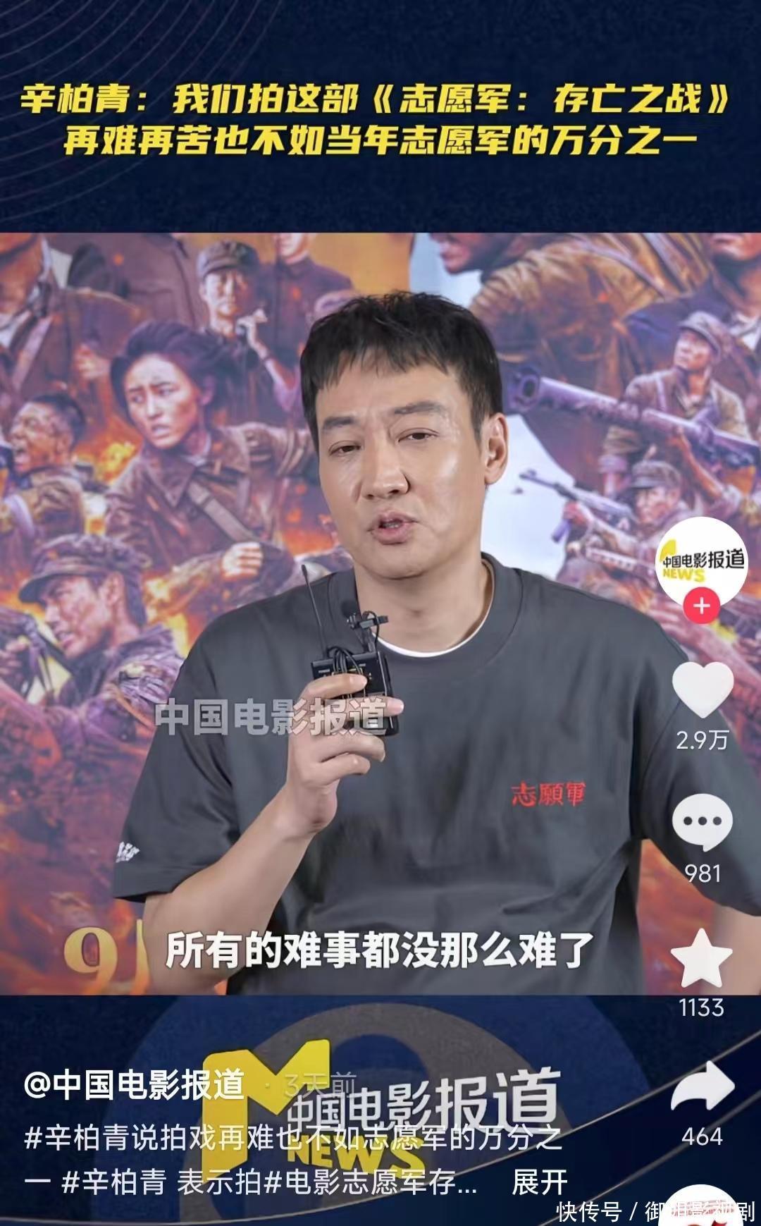 直到最近的国庆档电影《志愿军死活之战》上映,辛柏青再次出目下大家视线。