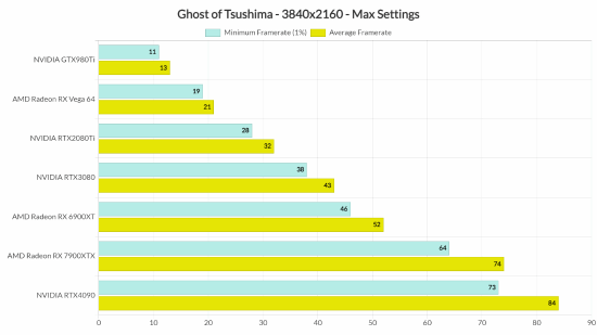 在1440P与画质全开的设备下,RTX 3080、Radeon RX 6900XT、AMD Radeon RX 7900XTX与RTX 4090等显卡大约让游戏向上60帧,而在4K与画质全开的设备下,惟一RTX 4090和AMD Radeon RX 7900XTX智商通顺独霸。