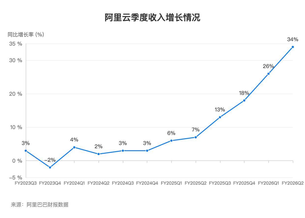 11月25日晚间,阿里巴巴集团发布最新季度财报。受握续苍劲的AI需求与群众云收入增长驱动,阿里云季度营收同比增长34%至398.24亿元,增速再立异高。其中,AI关连居品收入已调节九个季度收场三位数同比增幅,阿里云握续扩大AI云市集第一上风,份额荒谬第二至第四名的总数。