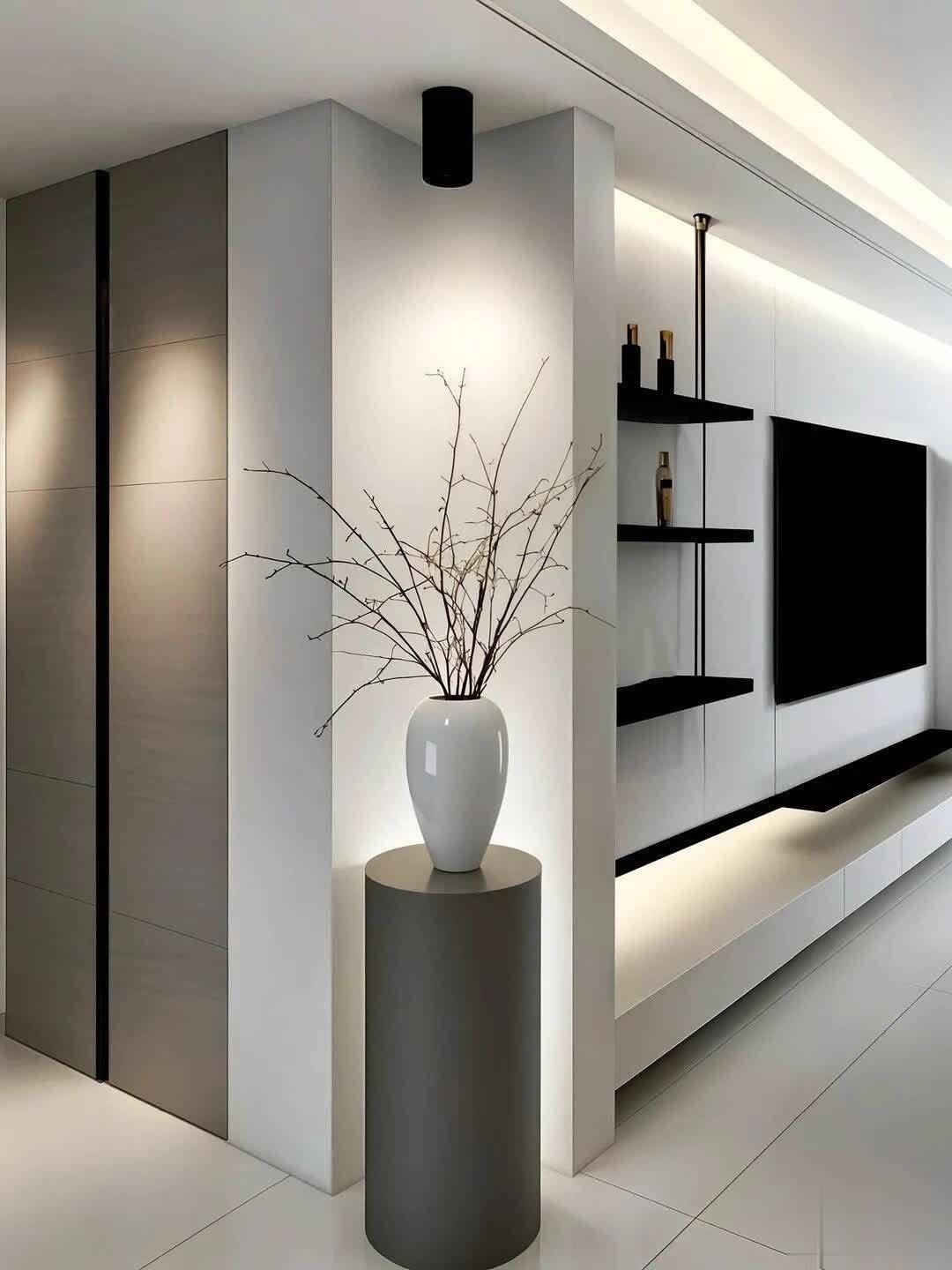 13. 绽开式展示台:小户型凹墙作念从简绽开式展示台,摆艺术品、相片,成为视觉焦点
