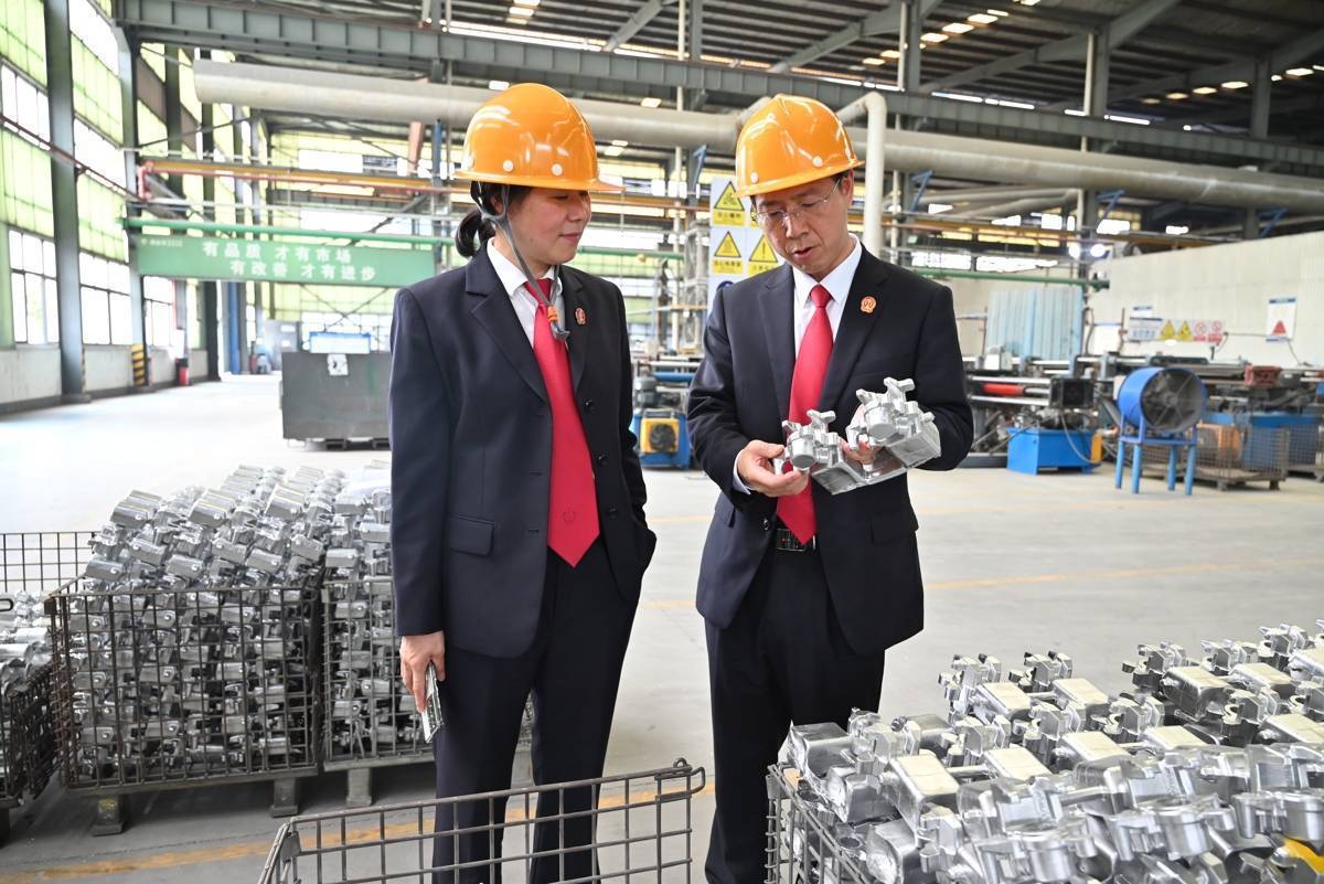 谷城县法院副院长张建平(左)拜访企业。
