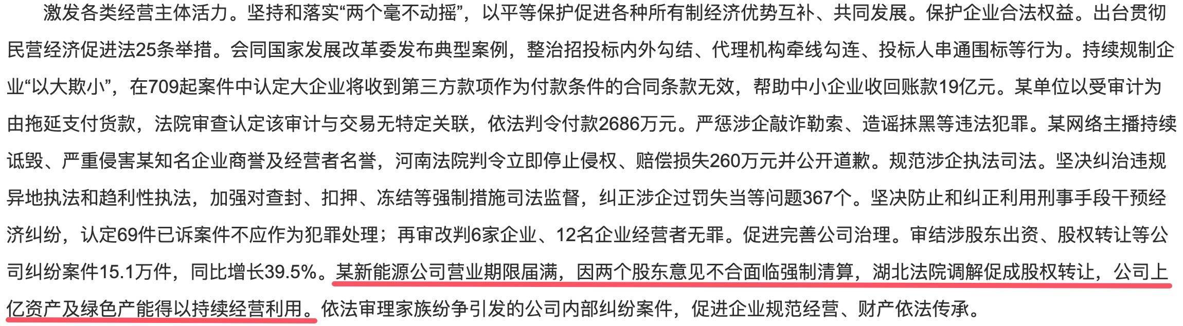 在最高手民法院职责敷陈中,该案动作“促进完善公司贬责”的典型案例被说起。敷陈称,某新动力公司买卖期限届满,因两个鼓吹见解不对面对强制计帐,湖北法院长入促成股权转让,公司上亿金钱及绿色产能得以抓续策画行使。